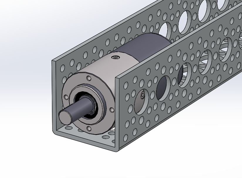 This seems like the best method because the motor is protected. ServoCity sells a small planetary gearhead motor that would fit in the channel. However, there is currently no way to attach the motor to the inside of a channel, and the motor does not have an encoder. For these two reasons, I will need to try another method. - Mount the motor on top of the channel, as shown in the following image on the ServoCity website: